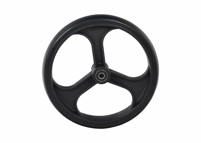 This 3-spoke black wheel assembly comes complete with pre-installed bearings and spacer.