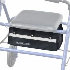 Our ultra-convenient upgrade tote is secured to the rollator’s cross-bars with snap-on straps, creating an open-top box for all those little necessaries that you carry around with you. The rollator seat functions as the box top or lid, keeping your cargo safe from the weather or prying eyes.
