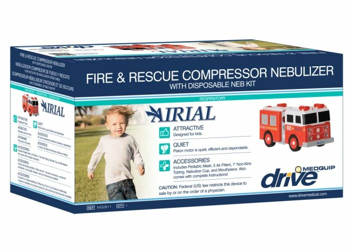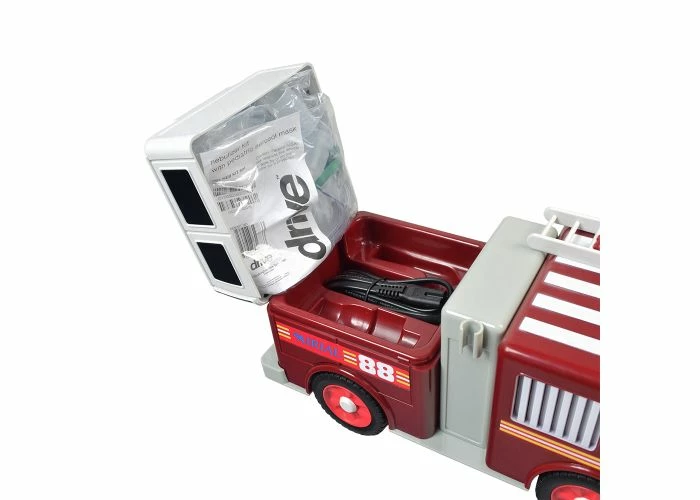 The “cab” is a storage compartment that holds the pediatric mask, disposable nebulizer kit, and tubing.